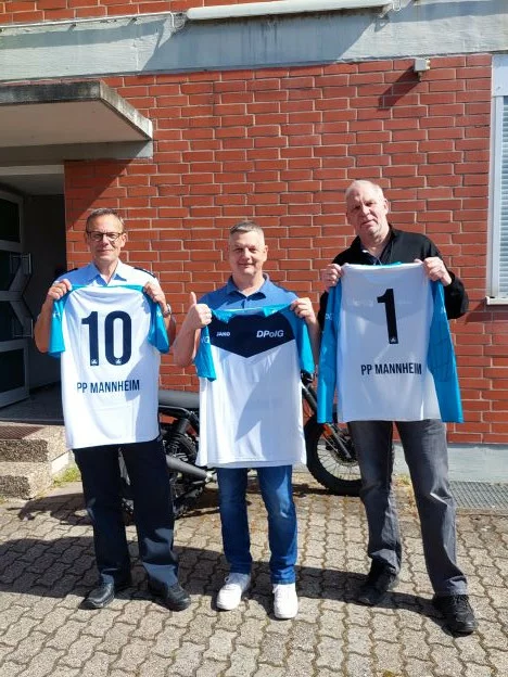 Offizieller Trikotsponsor der Polizeifußballmannschaft des Polizeipräsidiums Mannheim ist die DPolG BW